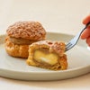 カスタード、生クリーム、モンブランペーストの風味豊かな三層のクリームをさっくりとした歯ざわりのクッキーシューで挟みました。