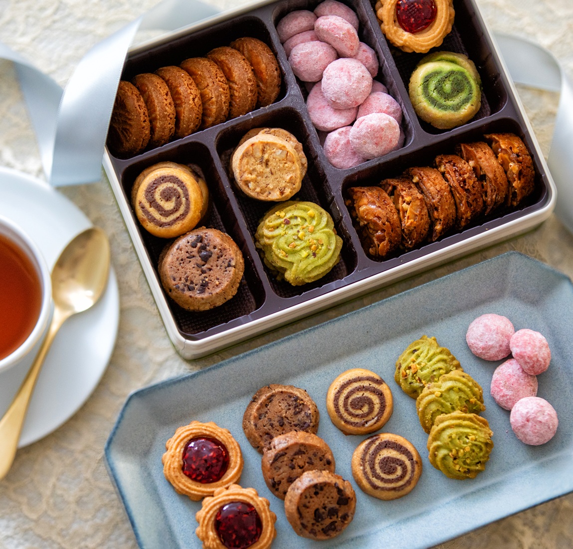 - バター香るクッキーやそばのガレット、メレンゲなど、さまざまな味わいや食感に心が躍る焼き菓子の詰め合わせです。カラフルな見た目と確かなおいしさで、贈答用にもぴったりです。